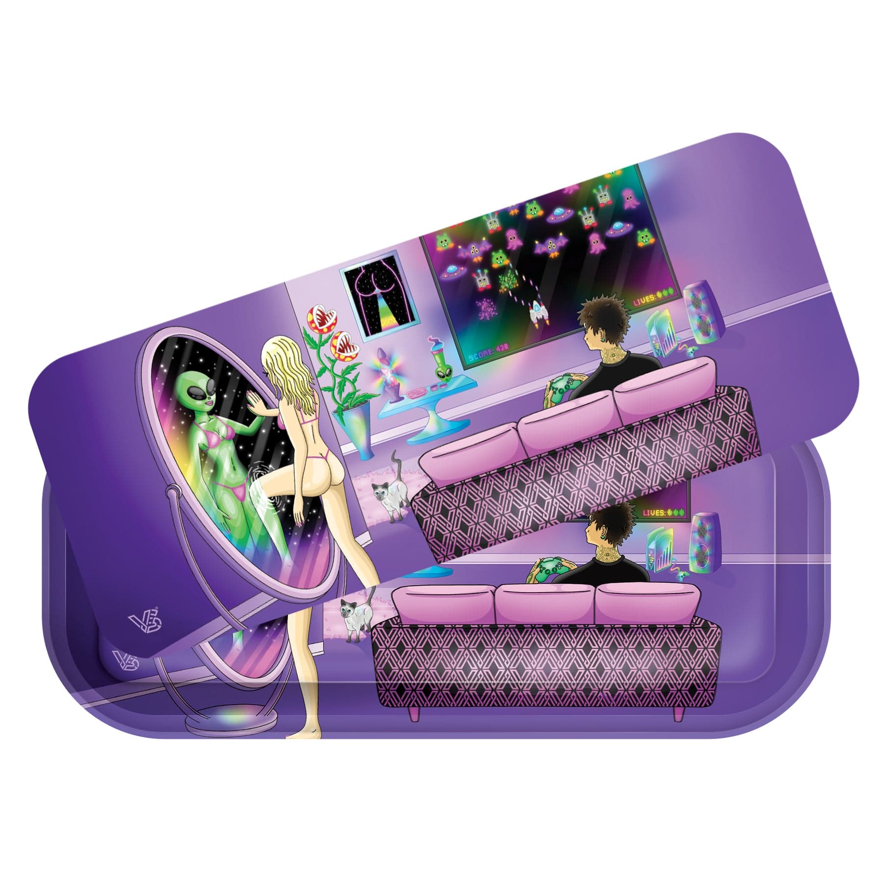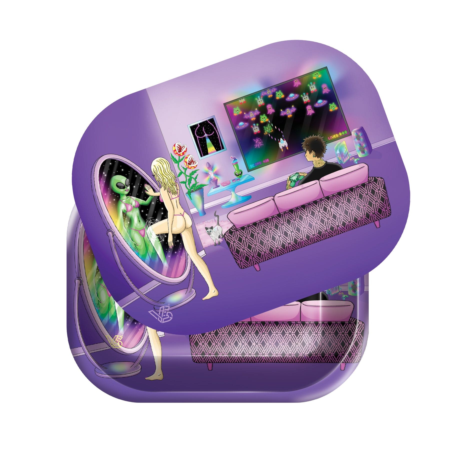 Includes one magnetic lid with a 3D image and durable metal rolling tray!