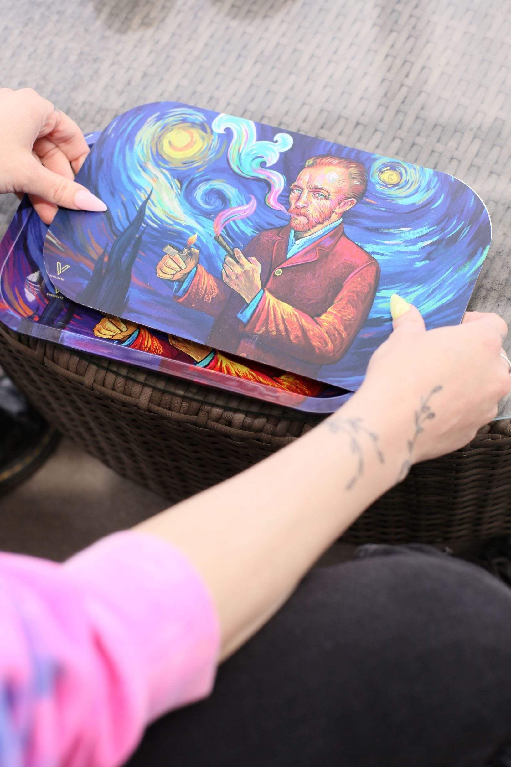Get ready to take your O’s on the Gogh with our Smoky Night Roll n Go bundle. Never go crazy at the end of a sesh again now that you can easily conceal your remaining herb and take it with you for your next sesh. Your travel to and from your next sesh will Gogh as smoothly as possible thanks to the metal rolling tray and magnetic lid that’s included in this bundle.