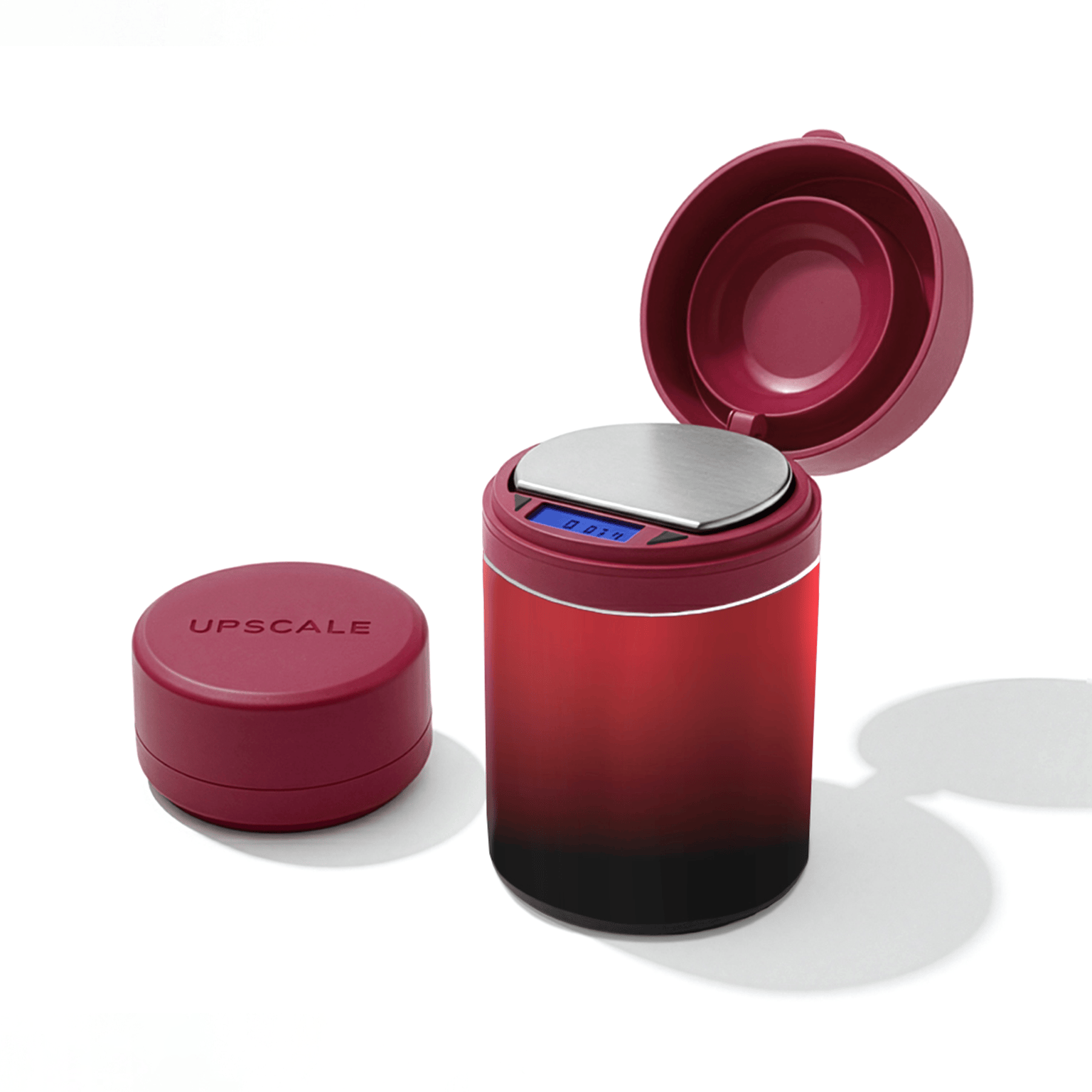 We don’t do boring jars. Upscale is the world’s first container jar + scale, so you can stash fresh, pop the tray, and weigh on demand—no extra gear, no guesswork. Detachable tray, humidity-pack pocket, USB recharge, and artwork that goes hard. Less mess. More precision. Big flex.